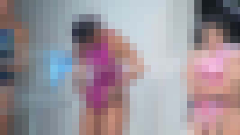 00:00~色とりどりのハイレグ競泳水着が並んでいます。競技前の練習の様子です。