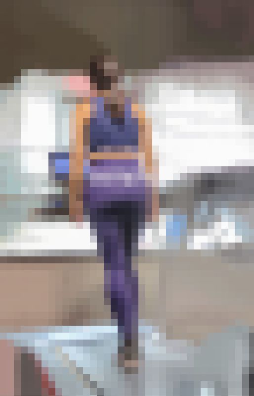 紫のレギンス、Pがうっすらと透けているのは自覚なし